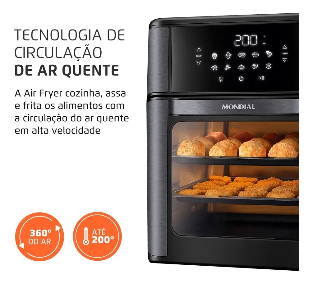3-Fritadeira Air Fryer Forno Oven 12L, Mondial, 2200W – AFON-12L-BI