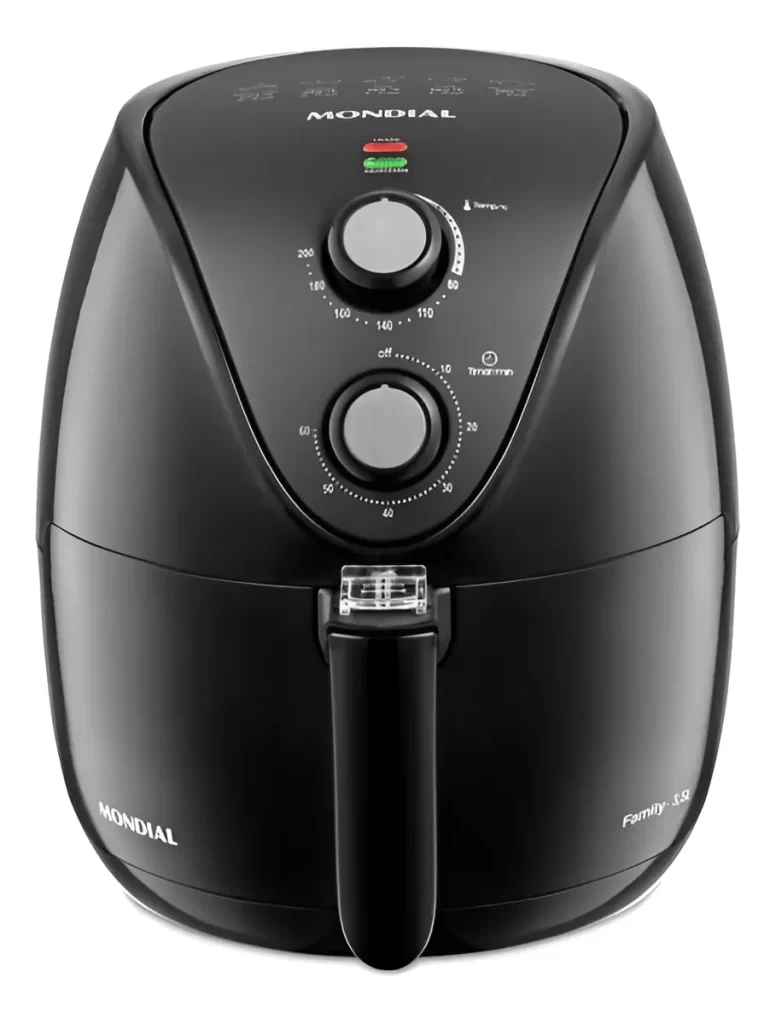 Clássico acessível para iniciantes! Com 4L de capacidade e 1500W, essa Mondial preta frita até 1kg de alimentos com circulação de ar uniforme. Painel analógico simples, temperatura de 80-200°C e timer de 60min. Ideal para apartamentos pequenos.