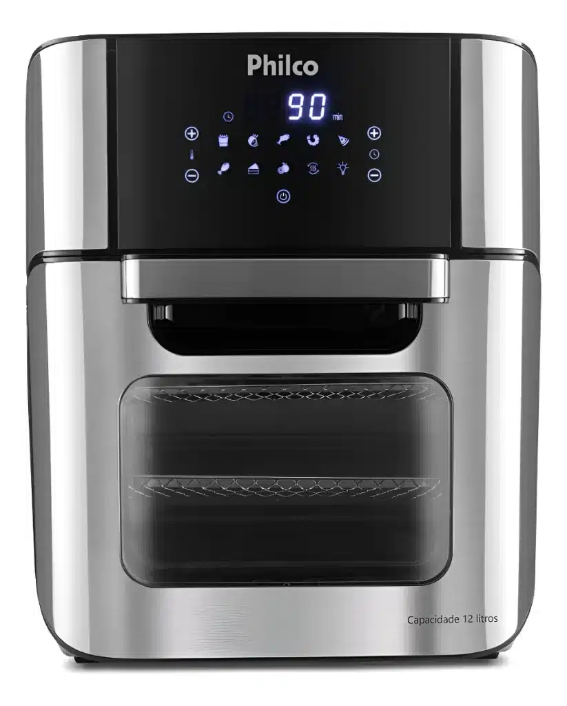 Prós: Multifuncional premium; antiaderente resistente; resultados profissionais. Contras: Preço um pouco mais alto. Melhor para: Usuários avançados querendo uma Air Fryer completa. Preço médio: R$ 700-900. Fritadeira Elétrica Air Fryer Oven Philco Pfr2200 12 litros 4 Em 1 1800w Cor Preta.