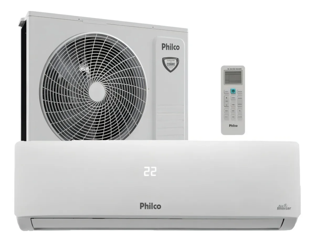 Ótima opção custo-benefício, o Philco PAC9FB é um split inverter de 9.000 BTUs com serpentina de cobre para maior resistência à corrosão. Ele reduz o consumo em até 70% e inclui filtro antibactéria, sendo ideal para ambientes de até 12m². Reviews destacam o resfriamento uniforme e o silêncio (22dB), embora alguns notem vibração leve em alta potência.