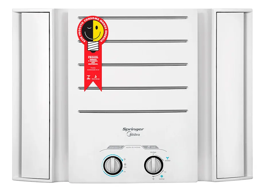 Não inverter, mas incluído por sua simplicidade e preço baixo: o Springer Midea de janela 7.500 BTUs resfria até 12m² com eficiência classe A e renovação de ar. Fácil instalação em janelas, com painel removível para limpeza. Bom para quem busca básico sem frescuras.