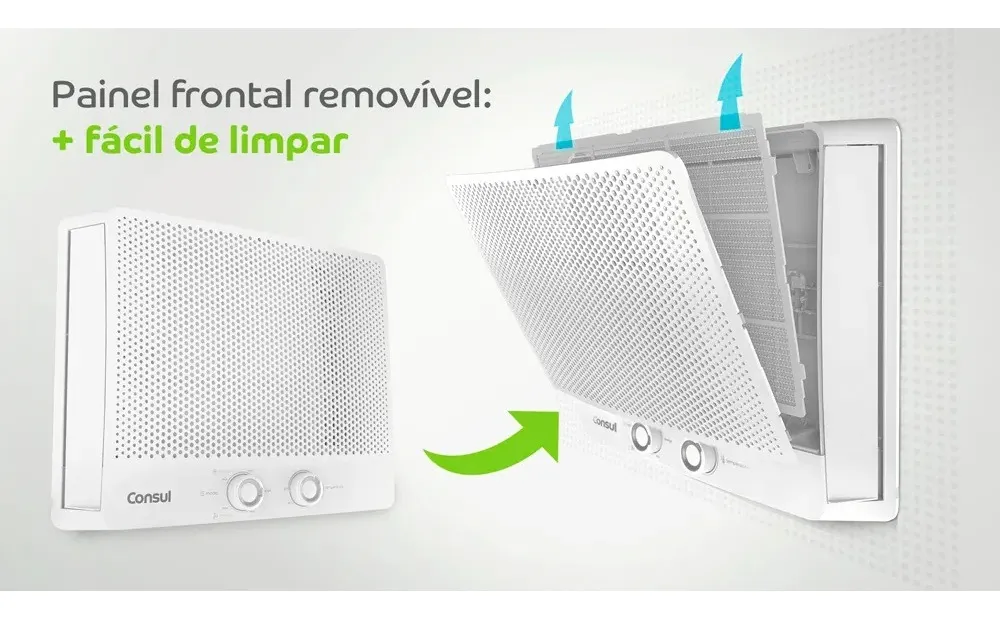 Básico e acessível, o Consul de janela 7.500 BTUs (não inverter) resfria até 12m² com filtro proteção ativa e design moderno. Fácil limpeza e instalação.