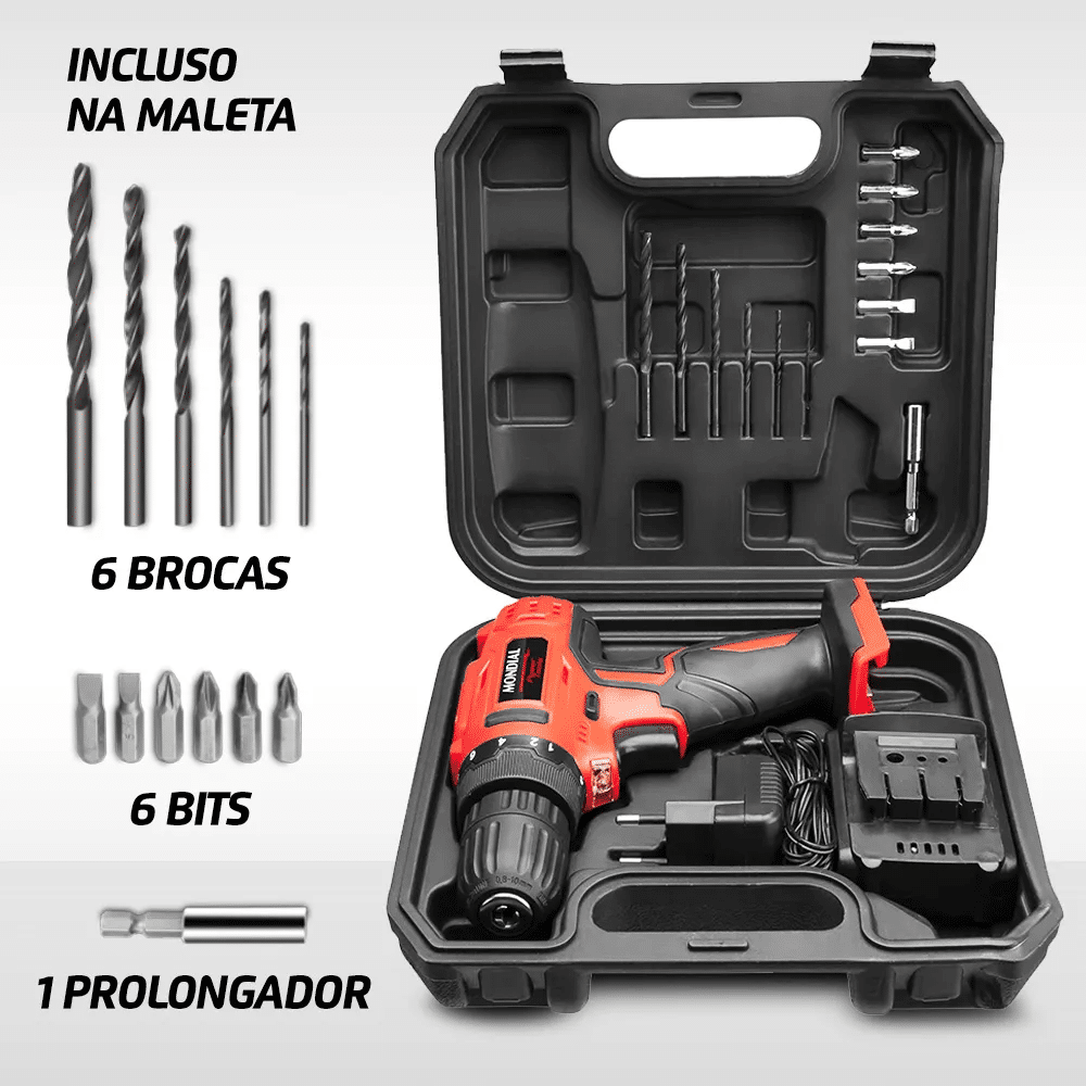 Por que vende tanto? Entrada acessível no mundo das parafusadeiras, com milhões de buscas. Furadeira e Parafusadeira à Bateria Mondial 12V Bivolt FPF-06M