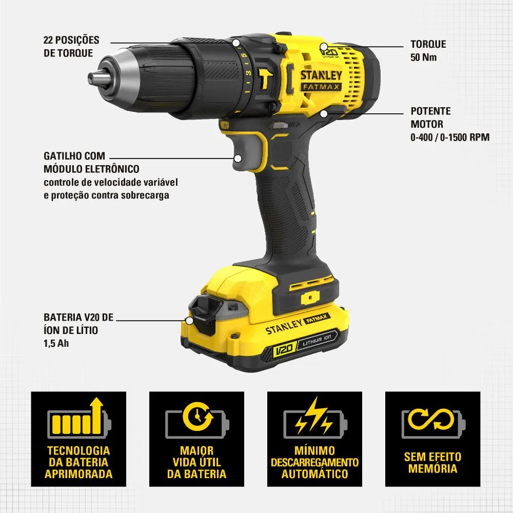 Por que vende tanto? Marca confiável para mecânicos, com vendas explosivas em 2025. Furadeira e Parafusadeira de Impacto Stanley SCD711C2K com Carregador e Bateria