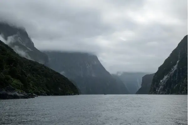 Milford Sound oferece paisagens de tirar o fôlego, com montanhas que se erguem dramaticamente das águas escuras e profundas. As condições climáticas frequentemente mutáveis criam um espetáculo natural, com neblina, sol e chuva alternando-se rapidamente, realçando a beleza do lugar. Cruzeiros e passeios de caiaque são atividades populares, permitindo que os visitantes se aproximem das cascatas imponentes e da vida selvagem abundante, incluindo golfinhos, focas e pinguins.