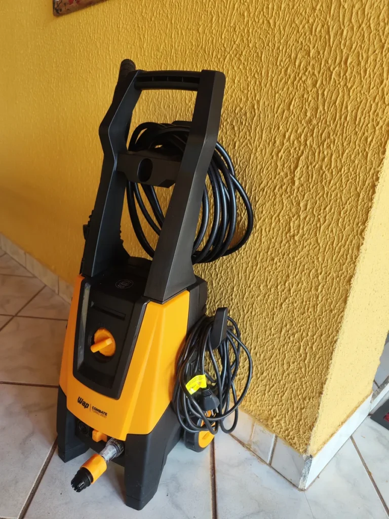 Lavadoras de Alta Pressão WAP Combate Turbo Pressão ~2100 PSI, 1700W, motor de indução, vazão 360 L/h, cabeçote alumínio, pistões inox, mangueira 5m. Indicada para: uso intenso residencial ou semi-profissional. Vantagens: durabilidade superior (indução), alta performance, excelente custo-benefício vs premium. Pontos de atenção: mais cara que modelos básicos WAP.