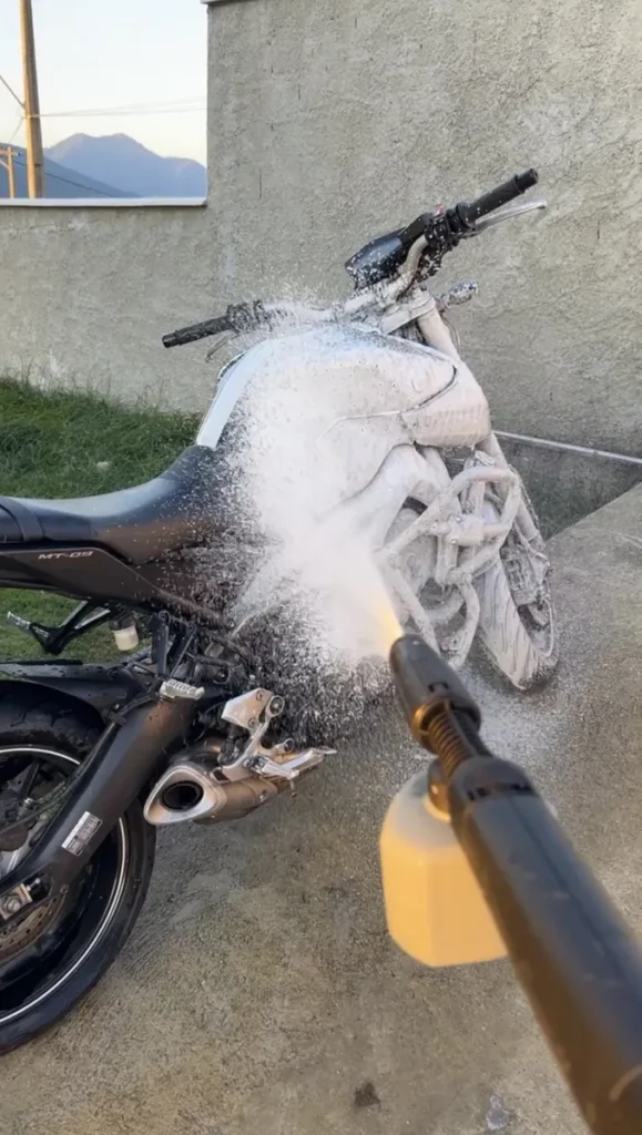A lavadora tem um ótimo desempenho, utilizei para lavar a relação da moto depois que jogo o produto de limpar a corrente e o resultado foi muito bom, deixou a corrente limpa do produto que uso para lubrificar, fiz um teste na calçada e tirou a sujeira do cimento com facilidade, recomendo a lavadora.
