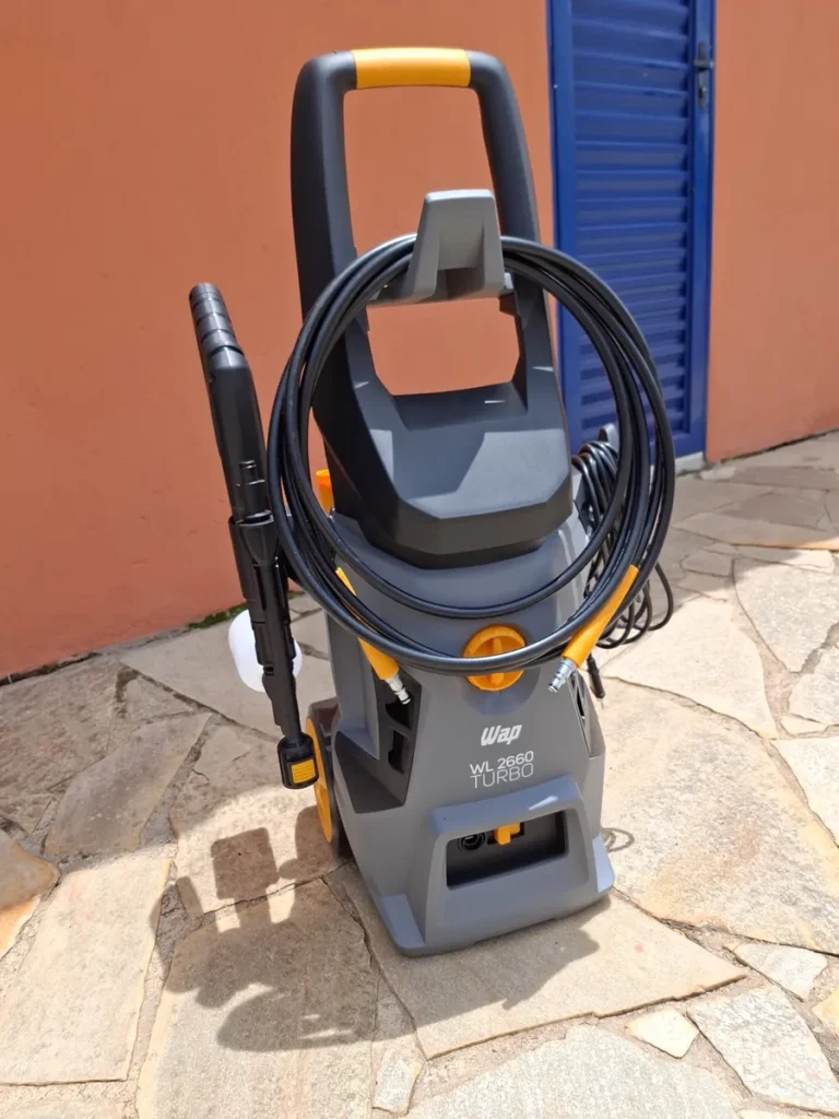 Lavadoras de Alta Pressão WAP WL 2660 Turbo Pressão ~2000 PSI, 1800W, inclui turbo e acessórios. Indicada para: residencial regular com sujeira moderada-pesada. Vantagens: alta pressão acessível, bom para calçadas e muros. Pontos de atenção: verificar durabilidade em uso muito frequente.